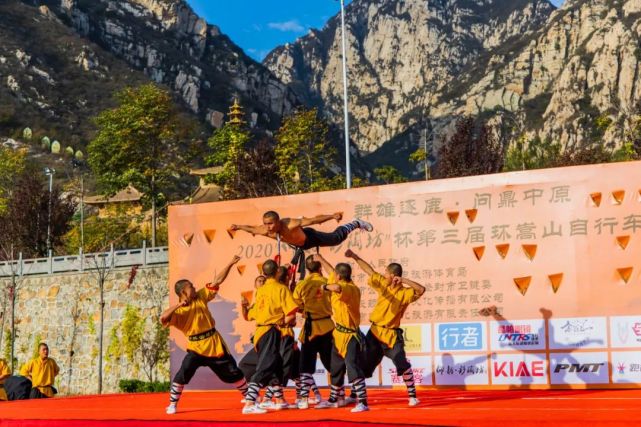 环嵩山自行车挑战赛是“群雄逐鹿,问鼎中原”品牌赛事在中原地区开展的主题系列赛事之一,今年已是第三年落地登封市。开幕式上,《禅宗少林·音乐大典》的舞蹈演员和武僧们还带来了精彩的表演,为选手们加油助威!