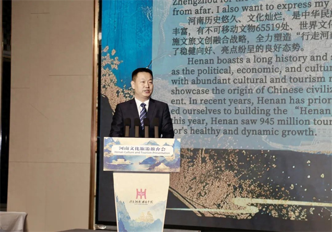 河南省政府副秘书长周锋在致辞中表示,作为中国历史上重要的政治文化中心、交通枢纽和商业商人发源地,河南与世界的文化经贸交流源远流长。在古老的陆上、海上丝绸之路留下了一段段历史佳话。希望河南文旅行业与世界各国文旅业界同仁一道,以此次推介会为契机,建立深化文旅协同发展机制,进一步拓展合作渠道、扩大交流交往,携手共创世界旅游繁荣发展的美好明天。