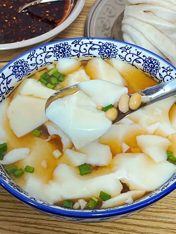 在河南,关于豆腐脑的甜咸之争显得有些“多余”。因为在这里,一碗洁白如玉、颤颤巍巍的豆腐脑,拥有无限可能。