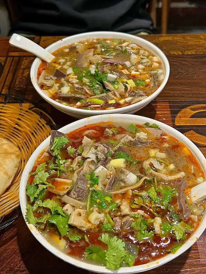 这碗看似其貌不扬的浓汤,却是无数河南人魂牵梦绕的家乡味道。它绝非简单的酸辣汤,而是用三十多种香料和中草药,配上牛羊肉、面筋、黄花菜、木耳等熬制出的养生汤。