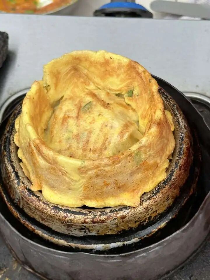 鸡蛋不翻是济源特有的传统小吃,这种来自济源的特色小吃,用米浆或面浆在一种特制的、中间微凹的平底锅上烙制。奇妙之处在于,整个制作过程只需烙熟一面,无需翻个儿,成品便自然成型。在出锅前,再淋上一层金黄的蛋液,更添风味。