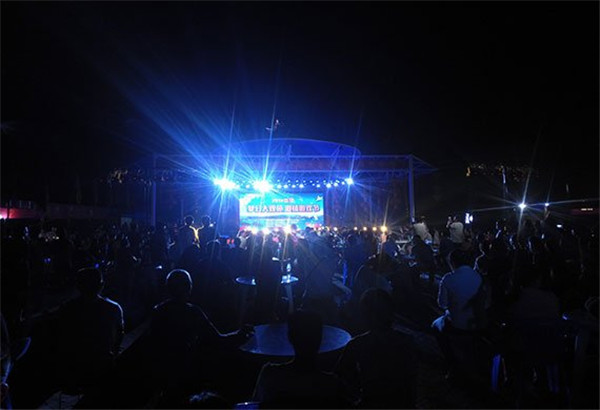 全民撒欢足球赛,主题晚会亦精彩。足球赛事结束后,主题撒欢晚会震撼呈现,多位实力表演嘉宾倾情助阵,用劲爆的摇滚、古风的舞蹈、精彩的反串、魔幻的变脸和天籁般的歌声,为众多游客奉献了一场多彩的视听盛宴。“摇摆丹江”有奖互动环节,无论男女,不分老幼,纷纷上台大秀摇摆绝技,彻底沉浸在丹江大观苑激情撒欢节的火热氛围中,欢呼上、呐喊声响彻夜空,整个晚会现场变成了全民撒欢的欢乐海洋。