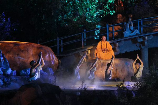 不管严寒酷暑,不论风雨如注,600多位演职人员始终坚守在实景演出的舞台上。为了给观众们呈现一场场更精彩的演出,他们每天都会针对前一天晚上演出时的不足之处进行排练、调整、完善;武僧演员们更是冬练三九,夏练三伏,就是在这样精益求精的态度下,确保了每场演出中的舞蹈动作和武术动作丝丝入扣。