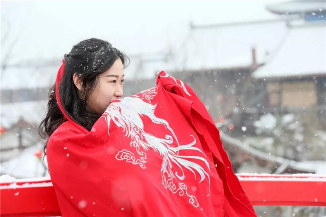 大年初六,清明上河园飘起了雪花,但是却没有影响游客的游园热情、脸上的欢乐、看演出时的认真!