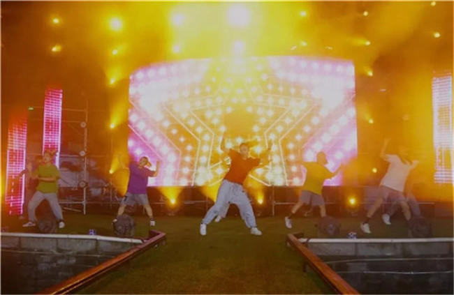 伴随 着欢快的音乐,绚丽的灯光,一群身着华服的舞者登台,带来了动感十足的爵士舞。美丽的女歌手也带来了英文歌曲《Nobaby》!