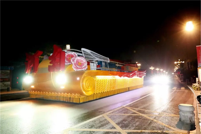 隆重亮相,荣耀中原!国庆70周年河南彩车“出彩中原”惊艳亮相开封清明上河园!