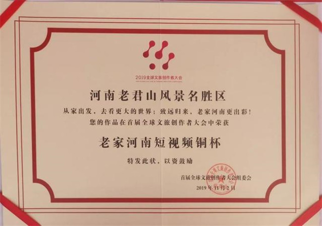 老君山景区 凭借抖音平台总播放量3.1亿,今日头条累计总阅读量4218.2万,获得“短视频类铜杯”。共创氛围浓郁