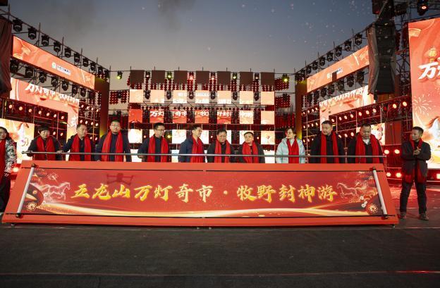 2026年2月7日,河南新乡五龙山旅游区2026年迎新春“万灯奇市·牧野封神”亮灯仪式在景区游乐园水上大舞台隆重举行。来自市、县的文旅部门领导、数百名行业合作伙伴、媒体代表及游客齐聚这座占地3700亩的综合性旅游度假区,共同见证传统非遗与现代光影的完美融合。